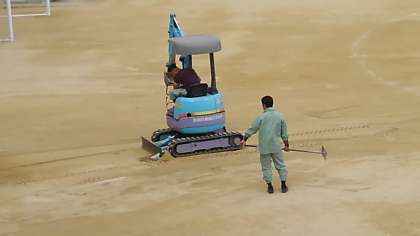 管理作業員さんのグランド整備の様子です。