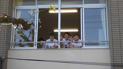 3年教室から「おはようございます」