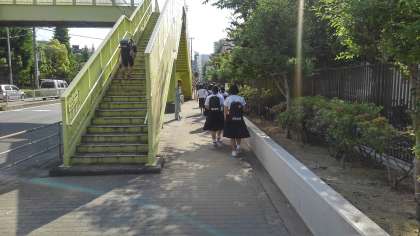 歩道橋下歩道が狭くなります。