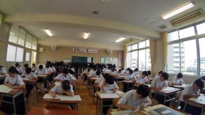 2年2組英語試験の様子です。