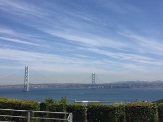 明石海峡大橋をバックにクラス写真撮影です。