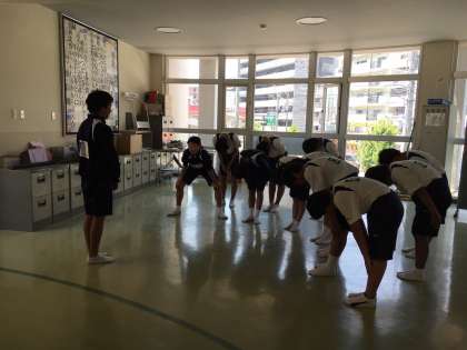 部長が今日の練習のよかったところと、改善点を部員に話しています。
