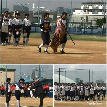 優勝旗を返還し、連続優勝を狙いましたが、市岡中学校に0-2で敗れ、第3位となりました。