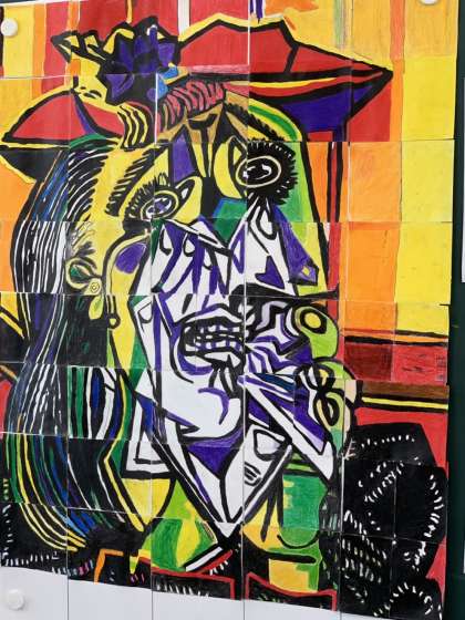 教育実習生の研究授業で、パブロ・ピカソの「泣く女」をクラス全員で完成させました。