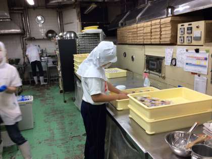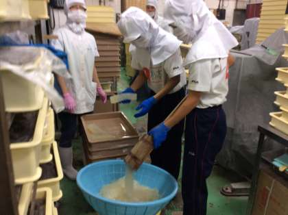 ところてん作りとあんみつ作り。親切・丁寧な作業指導のおかげで、楽しく体験しています。
