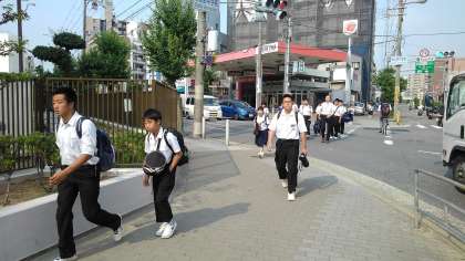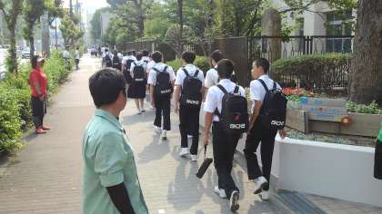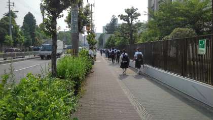 大きく広がらず、右側通行ができています。地域の通学通勤者への配慮ができていますね。