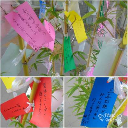 笹に飾られた赤や黄の短冊、風にゆらゆら揺れている様子は、色とりどりでにぎやかですね。