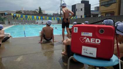 AEDをプールに設置します。