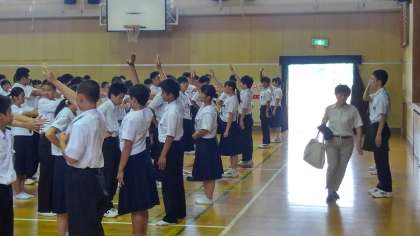 しかし、通学鞄を教室に置いて、体育館に集合できていない生徒もみられました。