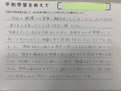 平和な未来を願い、貢献できる大人へと成長してほしいです。