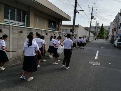 学校南側周辺清掃の様子。