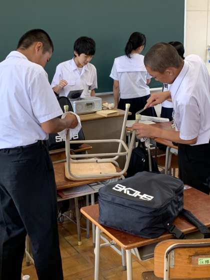 まずは机いすの脚の部分にこびりついた埃を取ります。