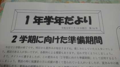 1年学年だより発行