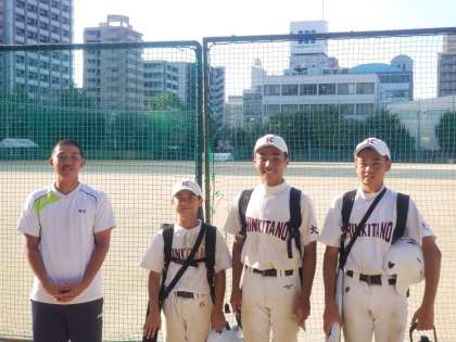 新北野中学からは投手鍋島大和くん、捕手中野太陽くん、内野手西琢人くんが選出されています。