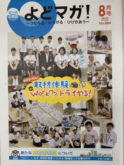 6月に行った2年生職場体験での取材が淀川区の広報誌「よどマガ8月号」に掲載されました。