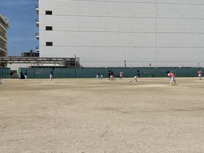 本日、サッカー部は此花区にある住友化学グランドでの練習試合に参加させてもらっています。