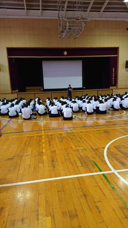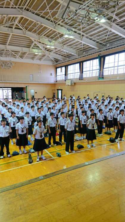 学年主任の先生のお話のあと、校歌の練習をしました。