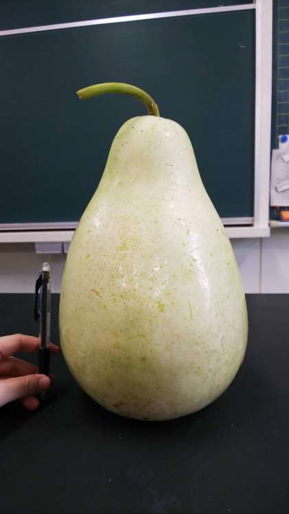 27cmです。大きいですね。しかしスイカと比べてとっても軽いです。興味をもったらぜひ自分で調べてみてください。新しい発見があるかもしれません。