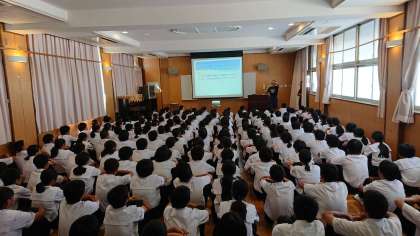 どのようなテストかを理解して受けられるように真剣に話を聞いています。