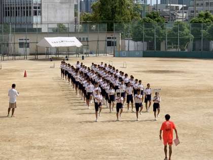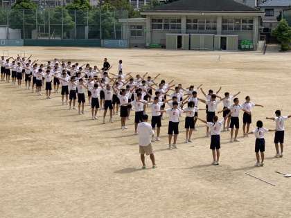 入場行進、ラジオ体操の練習です。