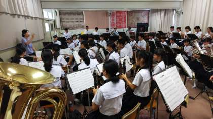 昼からの本番を想定して通し練習を朝から行っています。楽しい曲もかっこいい曲も、いろいろな曲があります。どうぞ、お楽しみに!