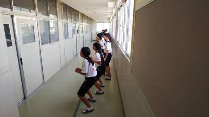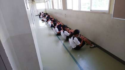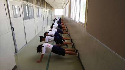 今日は体育館の割り当てがないため、校舎内で筋トレをしています。
