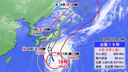 超大型台風19号日本列島接近中