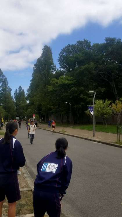 新北野陸上部、出場のないメンバーも大声で声援をおくっています。