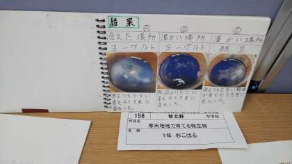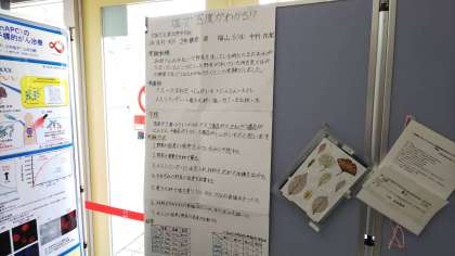階段下のロビーに自由研究が展示されています。どちらもよくまとまっていて、読みごたえがありました。すごいです。