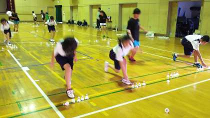 折り返すごとに並べたシャトルを倒していきます。
