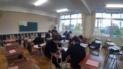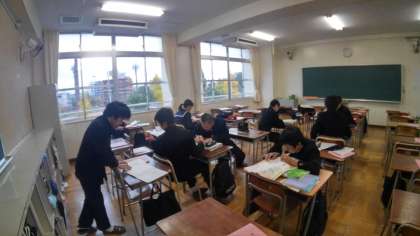 男女10名位の生徒たちがテスト直前学習に取り組んでいます。