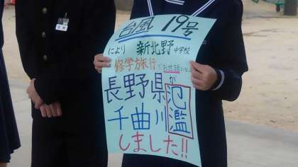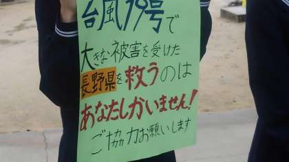 大きな声で呼び掛けています。
