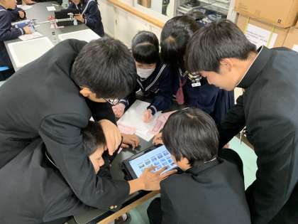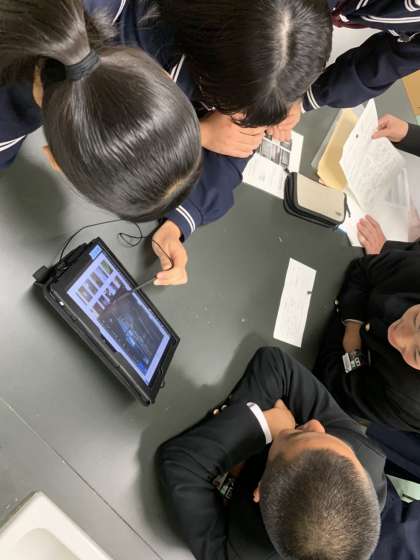 フォトコンテストに向けて、校外学習で撮影した写真を選んでいます。