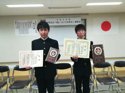 中学生の「税についての作文」表彰式があり、3年生2名が表彰されました。