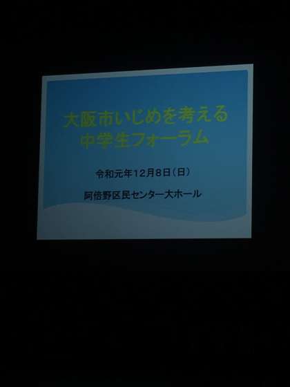 大阪市全ての中学校の生徒会が集まってのフォーラムが阿倍野区民センターで行われました。