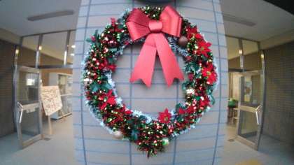 クリスマスリース飾られました。