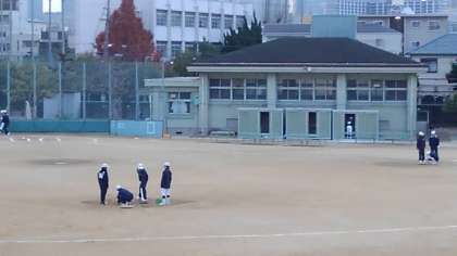 女子ソフトボール部朝練習中