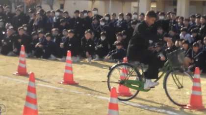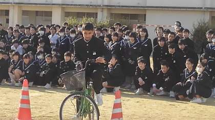 見学する生徒の応援や成功への拍手称賛