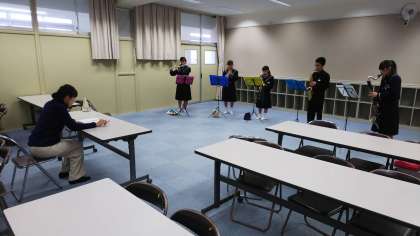 懇談期間を利用して、顧問の先生によるアンサンブルや合奏の指導が行われています。