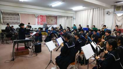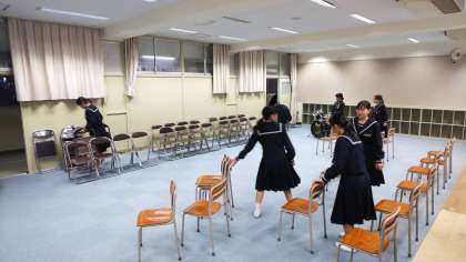 明日のクリスマスコンサートに向けて合奏と会場準備をしています。