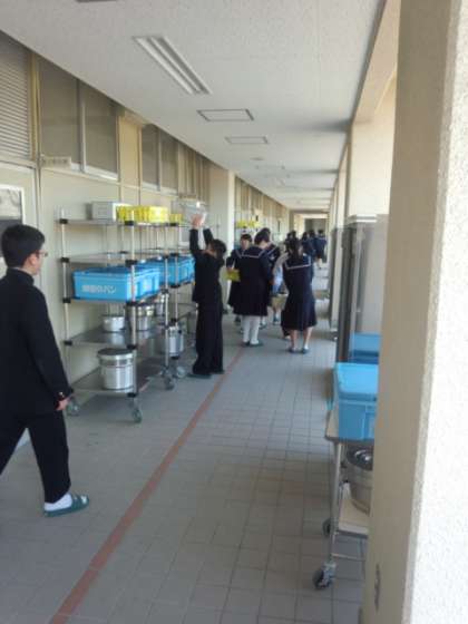 給食が終わり、急いで片づけをして、午後からのテストにそなえます。