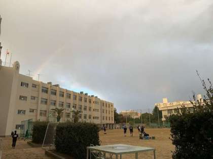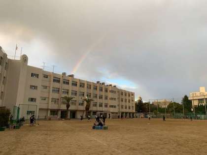 校舎北側に虹掛架かっています。