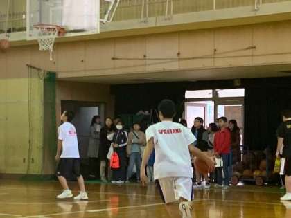 体育館の部活動は男女バスケットボール部です。
