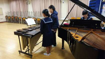 小学生が見学に来てくれましたが、特にマリンバの演奏に興味津々でした。打楽器は迫力がありますね。