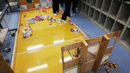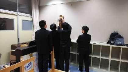 ロボットコンテスト全国大会に向けて、技術部がロボットの微調整をしていました。