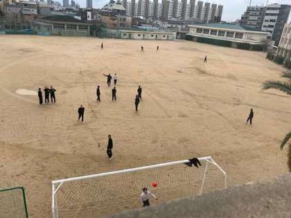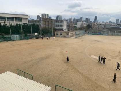 昼休みグランドでボールを使って楽しんでいます。