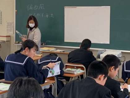 1年5組社会(地理)の授業です。