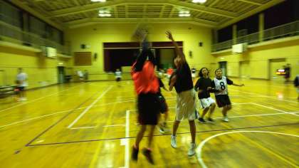 リバウンドでしっかり飛んでいます。お互いに声をかけあいながら取り組んでいました。