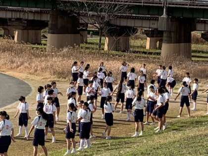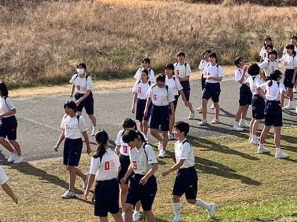 マラソン大会 2年女子スタート地点到着Photo