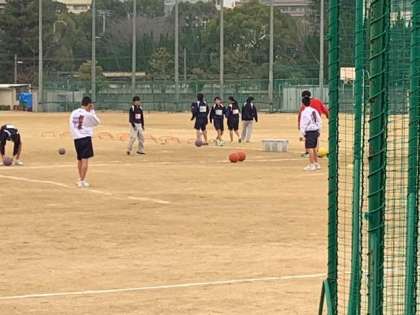 グランドにて練習中です。